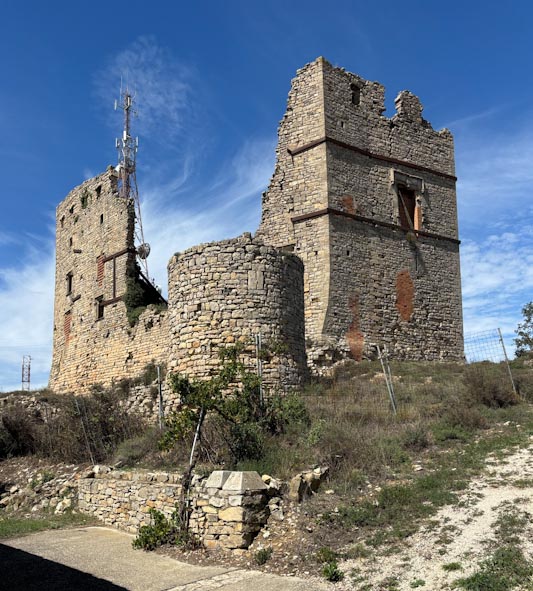 Savallà del Comtat Dalt d’un turó, amb vistes. El que queda del castell és del XV-XVI. Ara està en ruïnes, envoltat d’una enorme antena de telefonia. Tot el camí hem vist aerogeneradors. A nosaltres no ens molesten, però caldria veure com ha anat. Un cartell deia: “Energia renovable sí, però així no”