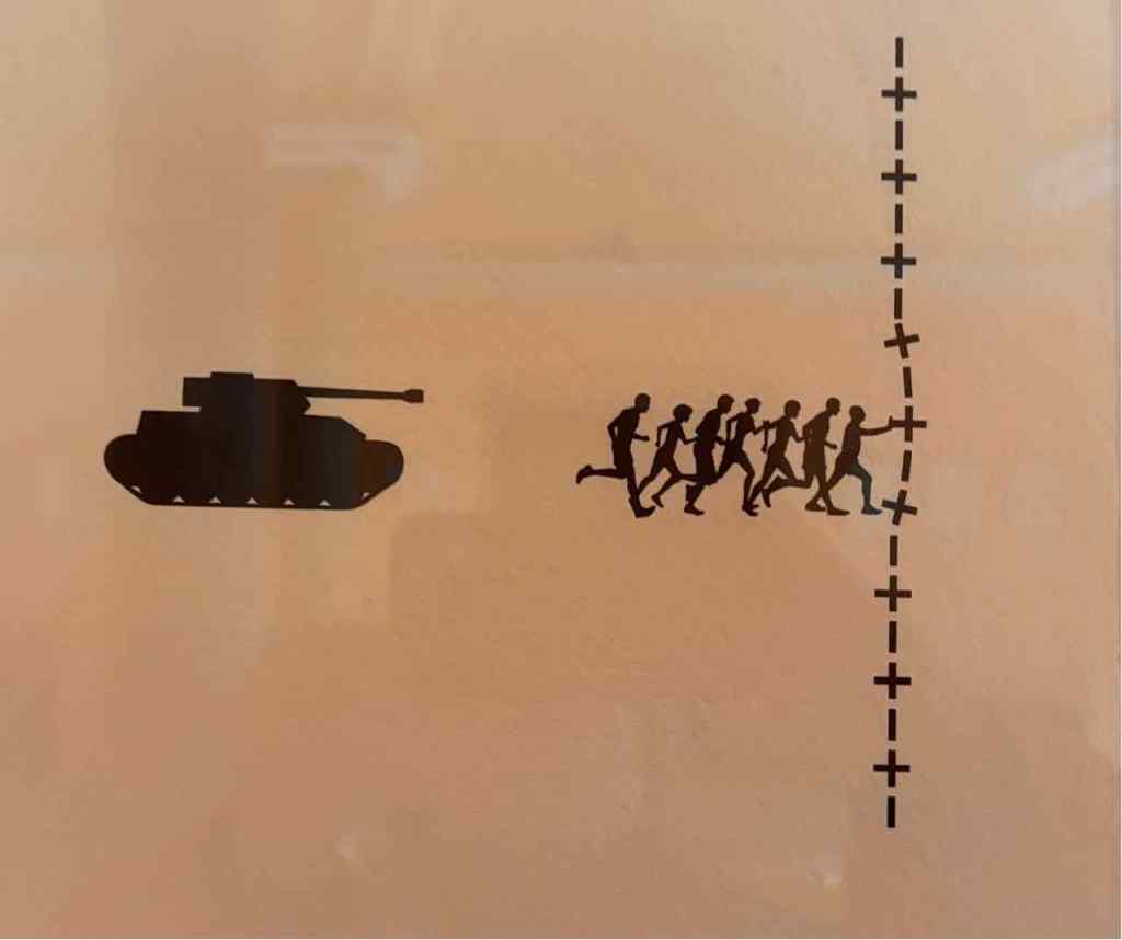 “Signes de frontera” és una sèrie gràfica de poemes visuals sobre el drama fronterer, en els quals, mitjançant la tipografia i el collage digital, exploro les possibilitats semàntiques subversives de la concatenació dels caràcters de la creu i la ratlla com a representació icònica i convencional de les fronteres polítiques en els mapes, amb el propòsit d’oferir una reflexió alhora lúdica i transcendent sobre les absurdes limitacions i contradiccions inherents a tota frontera física o mental”