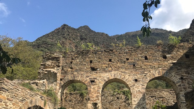 Fem una ruta d’esglésies, l’excusa per descobrir racons de la vall. La primera, per proximitat, S. Salvador de Bianya, un exemple clar d’art romànic, amb un absis semicircular amb capitells esculpits, mènsules amb motius vegetals o florals. Està tancada, com totes les que veurem després i moltes van quedar malmeses pels terratrèmols del 1427 i 1428.